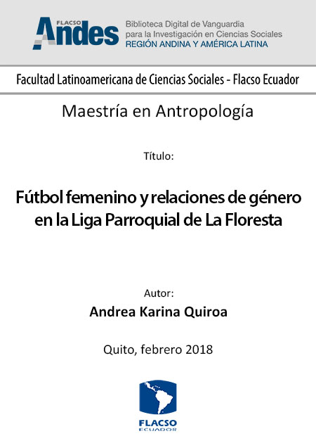 Quiroa, A. K. (2018). Fútbol femenino y relaciones de género en la Liga Parroquial de La Floresta. [Tesis de maestría, Facultad Latinoamericana de Ciencias Sociales-Flacso Ecuador]. https://repositorio.flacsoandes.edu.ec/server/api/core/bitstreams/6dba44d5-d78b-4eca-ba2c-dddc28d110d4/content